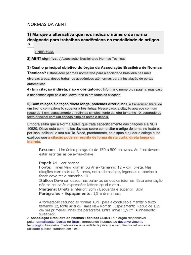 As normas abnt são um conjunto de regras instituídas pela associação brasileira de normas técnicas para a elaboração de trabalhos acadêmicos... Citação curta (até 3 linhas) deve ser inserida no texto, entre aspas.. As normas abnt são um conjunto de regras instituídas pela associação brasileira de normas técnicas para a elaboração de trabalhos acadêmicos.